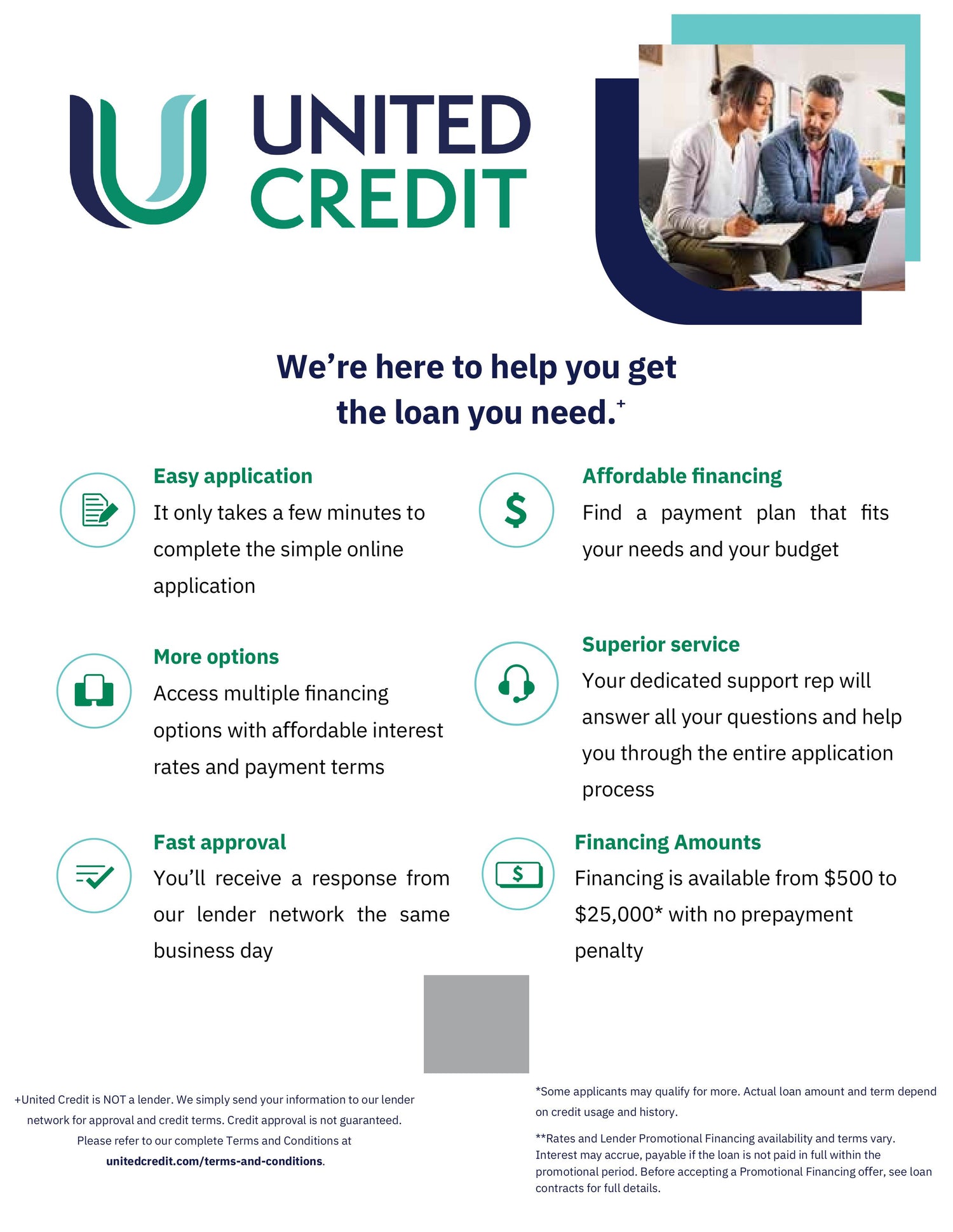 United Credit connects consumers like you with loan options to help you secure funding for the major purchases in your life.